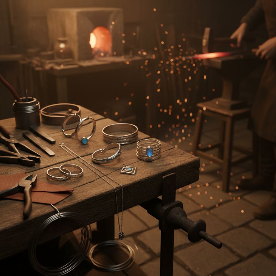 The course runs over two full days or a series of evening sessions, depending on the host studio. Class sizes are kept very small, typically four to six participants, because jewellery work demands close supervision and individual feedback. All tools, materials, and consumables are provided. Sterling silver is included in the workshop fee, so you work with real precious metal from the start rather than practising on substitutes that behave differently under the torch and the file.